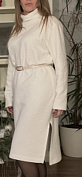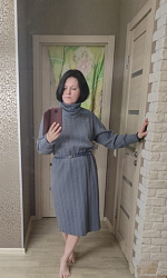 Классная выкройка! Покупала у вас первый раз и осталась очень довольна. У меня ОГ- 92 см, ОБ-96. Выкройку взяла на размер меньше. Шила из 3-х нитки с начёсом. Классно сидит и с поясом и без него. Модель очень удачная.