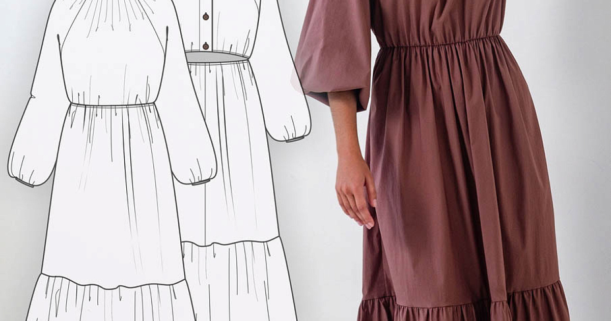 Выкройка отличная! Подробная, понятная инструкция! Шьется легко))) Изменила высоту оборок юбки, отказалась от планки по центру спинки, укоротила длину рукава и ширину рукава и оборок из-за маленькой ширины ткани. В носке платье комфортное, летящее. Материала много, около 3 м, и это чувствуется вноске (я выбрала слишком плотный и тяжелый для этой модели хлопок). Выбирайте более легкие и тонкие ткани.