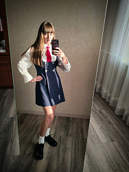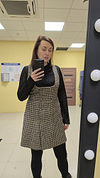 Очень понравился сарафан. Шила для дочери в школу, фото на мне. Я ростом 164, дочь 158. Это моё первое изделие на подкладке. Честно, несколько раз перекраивала нижнюю юбку, перепутала борта правый и левый и заметила это только когда начала соединять подкладку с низом юбки😂 А всё потому, что нужно быть внимательным при раскрое, детали не зеркальные, важно не перепутать лицо и изнанку при раскрое. В общем я из-за не опытности всё напутала🙈 Инструкция очень понятная, шилось легко, переделывать косяки было больно и обидно😅 Но главное, я справилась! Итоговый результат радует! Обязательно сошью такой сарафан себе, но с учётом всех своих ошибок, теперь уже на опыте)))