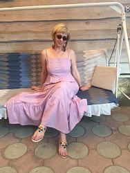 Отличный сарафан! Очень эффектная спинка. Сшила в варианте с 3 ярусами, чтобы уместиться в 1.5м. Интересная технология пошива, получается очень аккуратная изнанка. Хочется поблагодарить за иллюстрированную инструкцию, так гораздо удобнее, чем с фото!