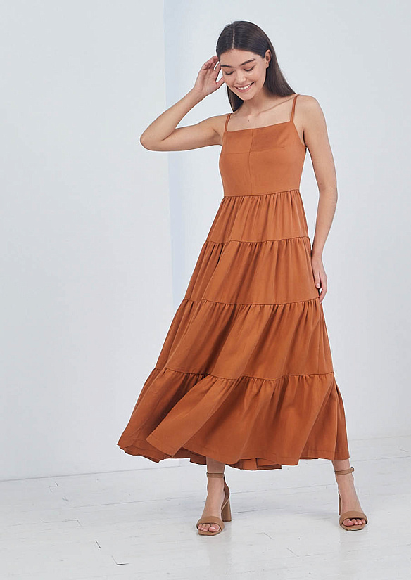 Классный сарафан, влюбилась, как только увидела. Себе сшила версию из трёх ярусов из остатков от предыдущих пошивов, изменила только их ширину, чтобы уместиться в 1.5м. Понравилась технология, все продумано, получается очень аккуратно с изнанки. Прикольно, что инструкция иллюстрированная, а не фото, на которых бывает сложно разобрать задумку автора.