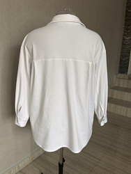 Хорошая рубашка, взяла на размер меньше так как не хотела оверсайз. Шила из трикотажа и вместо пуговиц поставила кнопки. Описание понятное. Буду шить еще.