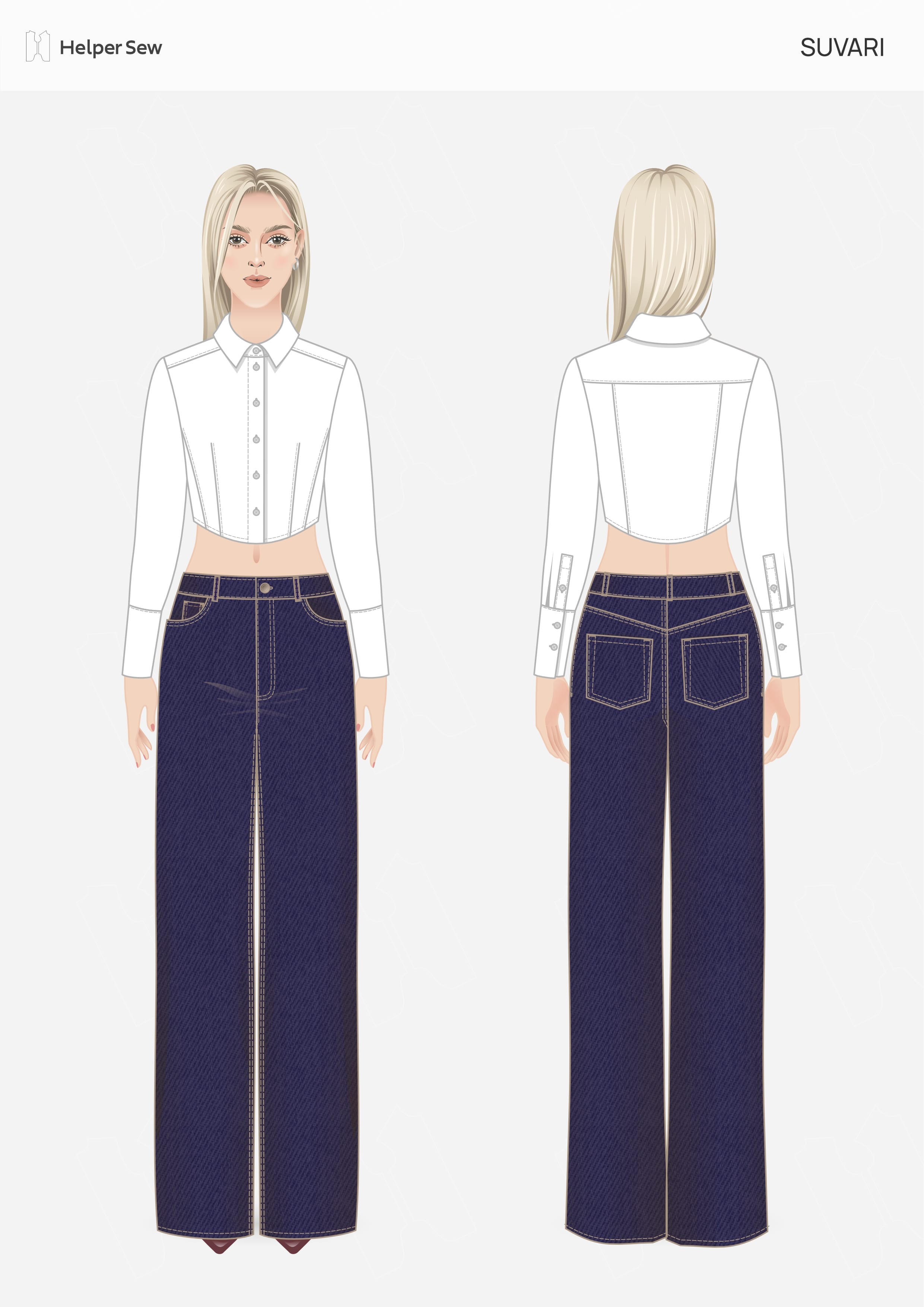 Рубашка - любовь! Весь процесс легкий и понятный, шить - одно удовольствие! Немного корректировала: расширила на 0,5 см у талии вытачки и припуски рельефов. Хотелось пошире книзу. Плюс на 1 см удлинила у боковых швов, оставив центр низа, как было. В итоге надевала уже и с сарафаном Suvari, и с джинсами. Очень удобно, как вариант под свитер. Когда хочется воротник и манжеты, но не хочется лишнего объема классической рубашки внизу.