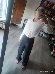 Шила дочке. Размеры нестандартные, поэтому корректировала под фигуру. Блузка отличная, необычный фасон. Была выбрана, так как рубашку сложно красиво заправлять в брюки.