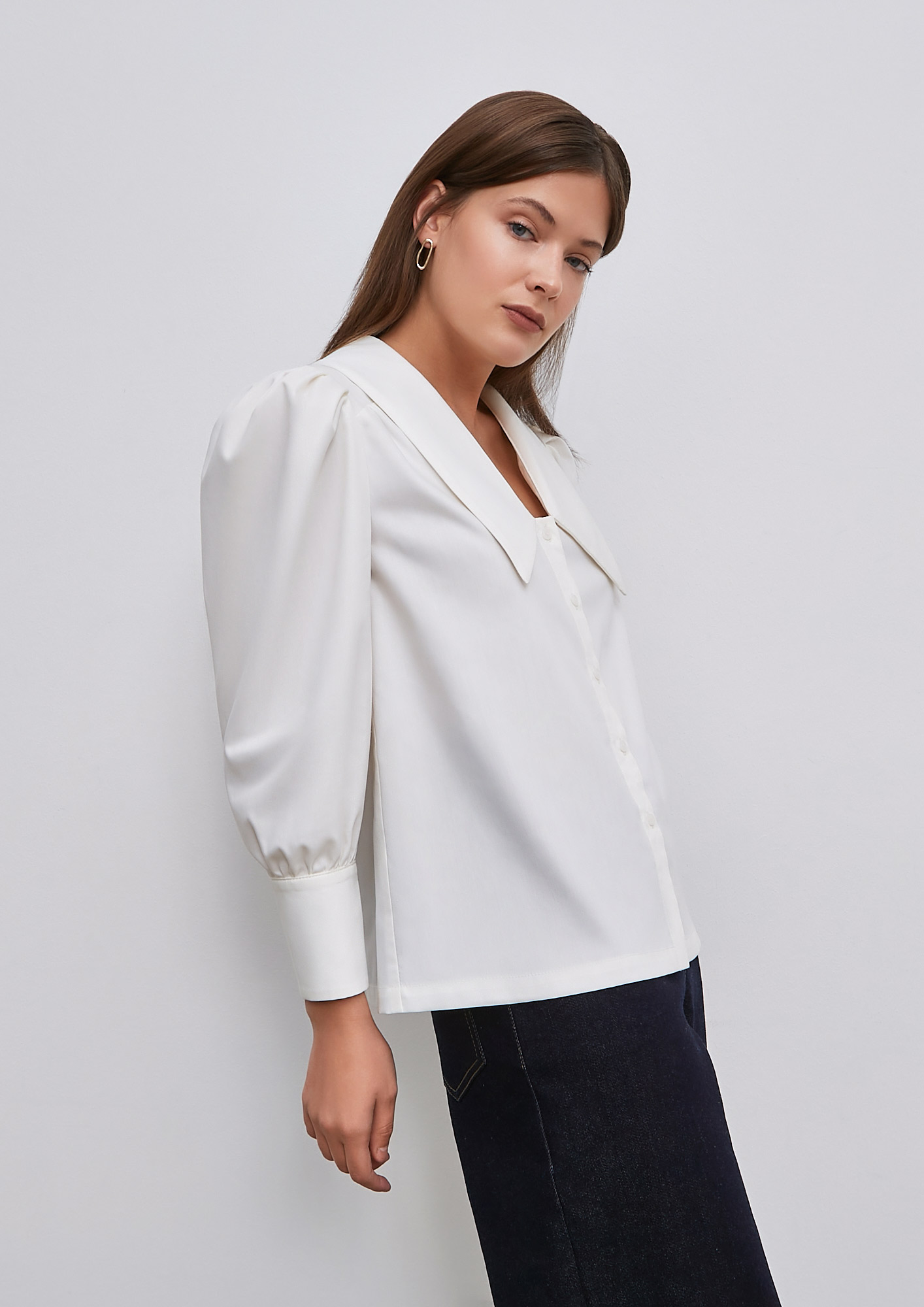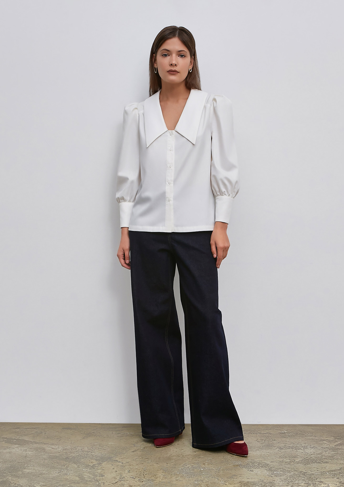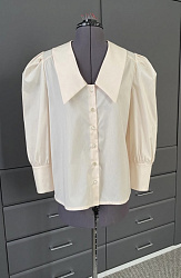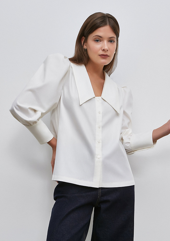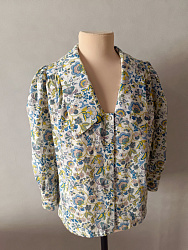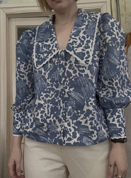 У меня лежал отрез итальянского хлопка, который наконец-то нашел свою модель и стал прекрасной блузой в стиле ретро. Ношу с джинсами. Село все идеально, без корректировок.