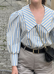 Две красотки в моей коллекции 💖 Большой воротник, объёмные рукава, в меру свободная. На мой взгляд, даже немного нарядная. Выкройка без изменений в молочной блузе и удлинила рукав в полосатой. Пошив средней сложности. Единственный деликатный момент-это аккуратно выполнить стык между планкой и воротником. Ткань смесовая, хлопок и полиэстер.