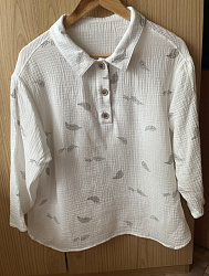 Хорошая выкройка, инструкция понятная. Ничего не меняла. В следующий раз чуть-чуть расширила бы рукава, а то по сравнению с объёмом рубашки выглядит немного куце.