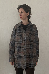Решила сделать теплую рубашку и сшила ее из костюмной ткани, из которой обычно шьют жакеты. Корректировок никаких не вносила.