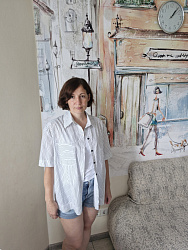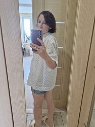 Хорошая рубашка получилась, взяла на размер меньше, заказчица не хотела слишком овер)
