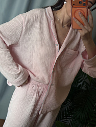 Хорошая выкройка пижамной рубашки, единственное мне показались коротковаты рукава, добавила 4см к длине☑️ Если любите длинные рукава-лучше добавить при раскрое несколько см)) На свой 42 взяла 46 размер, чтобы было посвободней. Шила из муслина, брюки тоже Helpersew, выкройка Dora