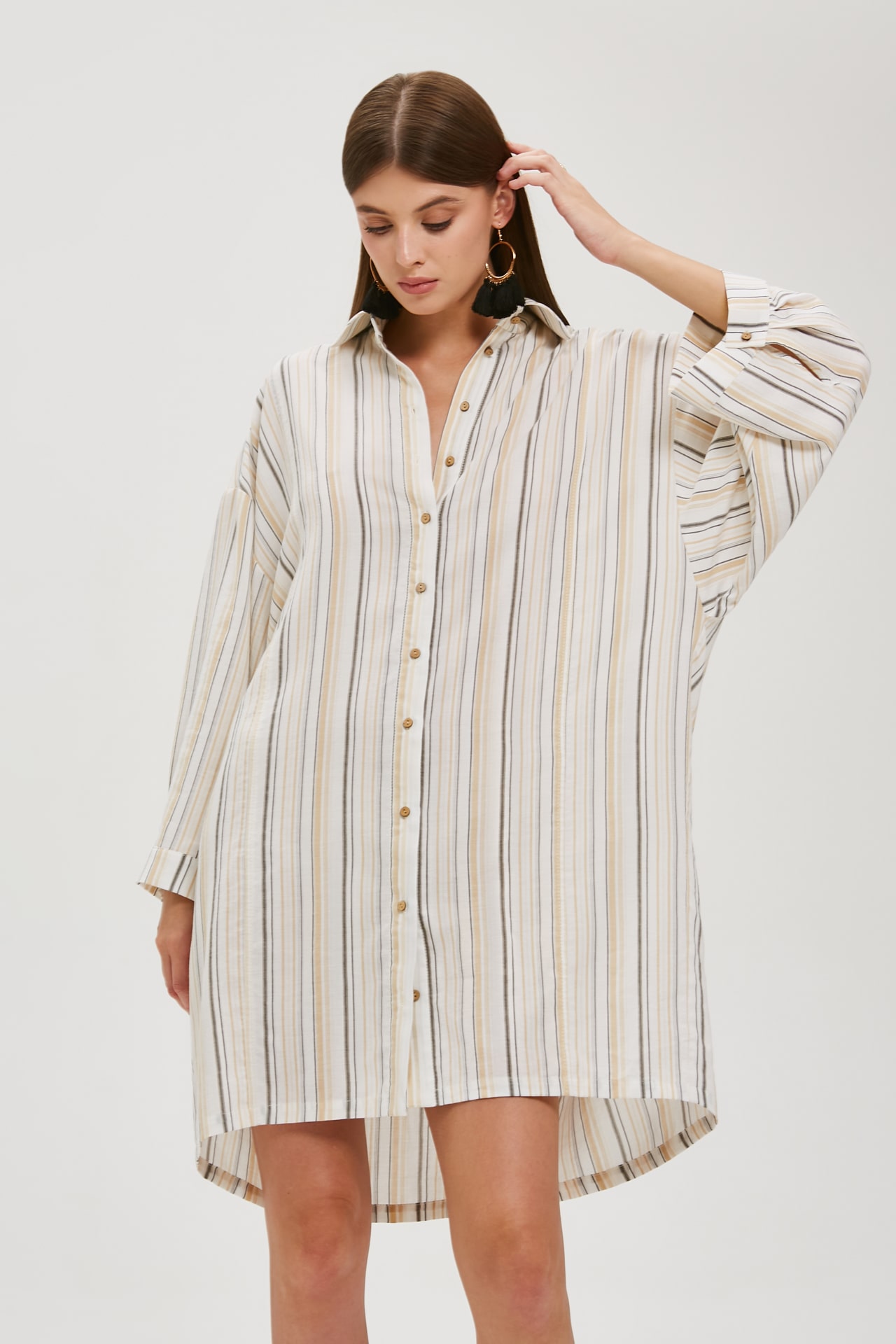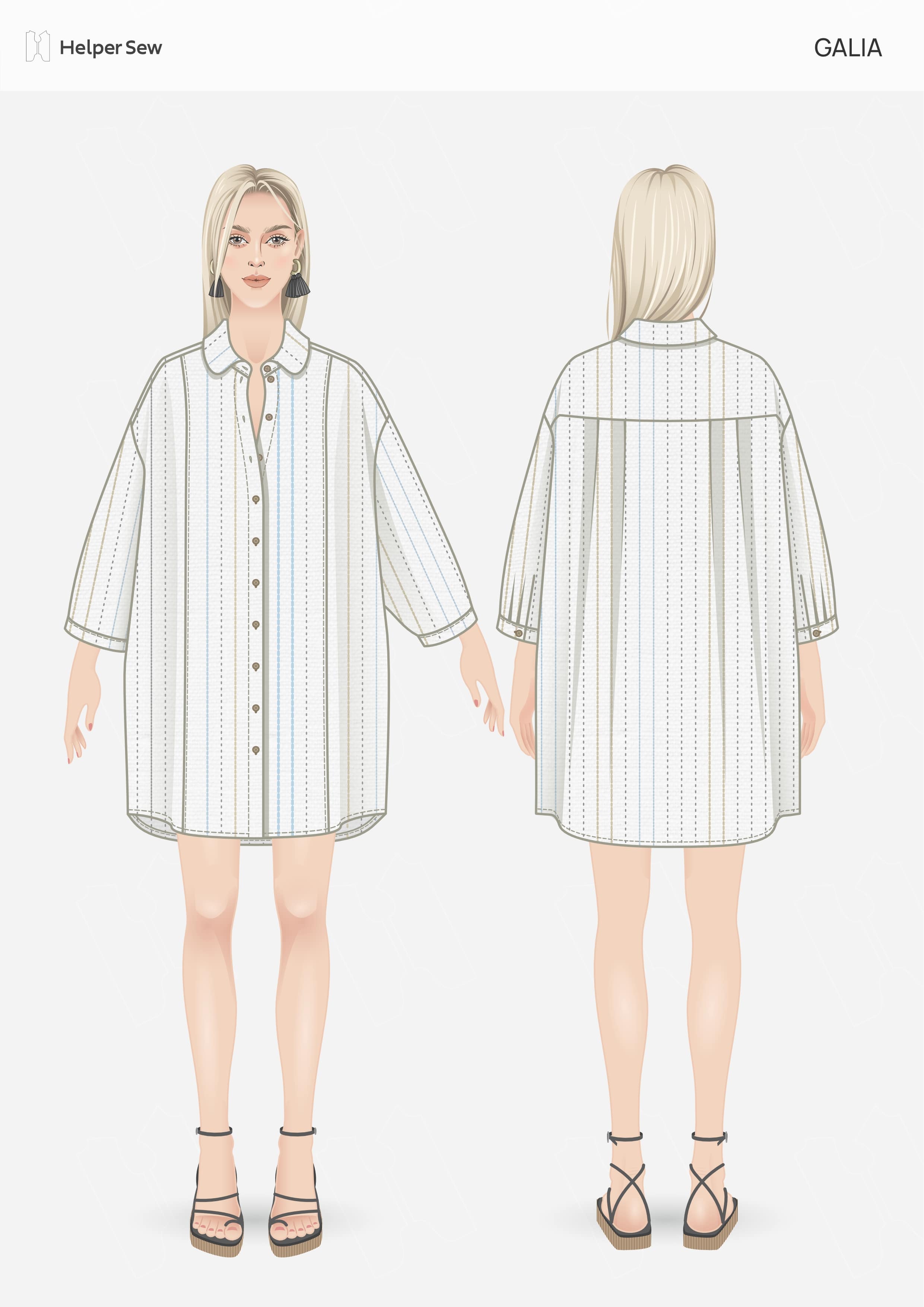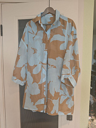 Классная выкройка! Первую рубашку бежевую по длине сделала согласно выкройке. Вторую, белую из ажурного хлопка укоротила по длине. Выкройка оверсайз. Описание отличное, шить одно удовольствие.