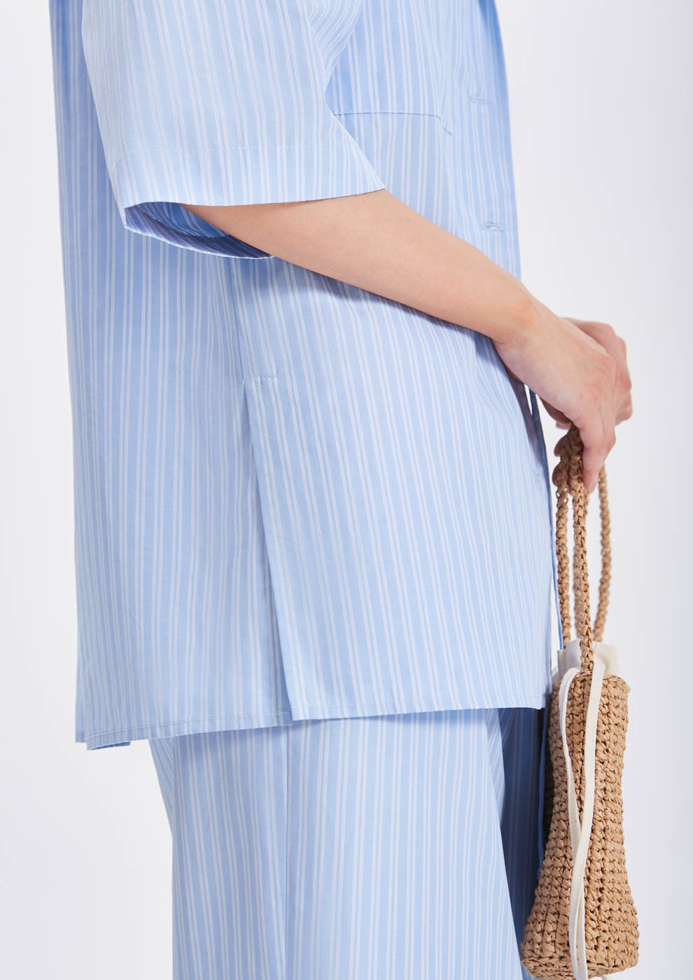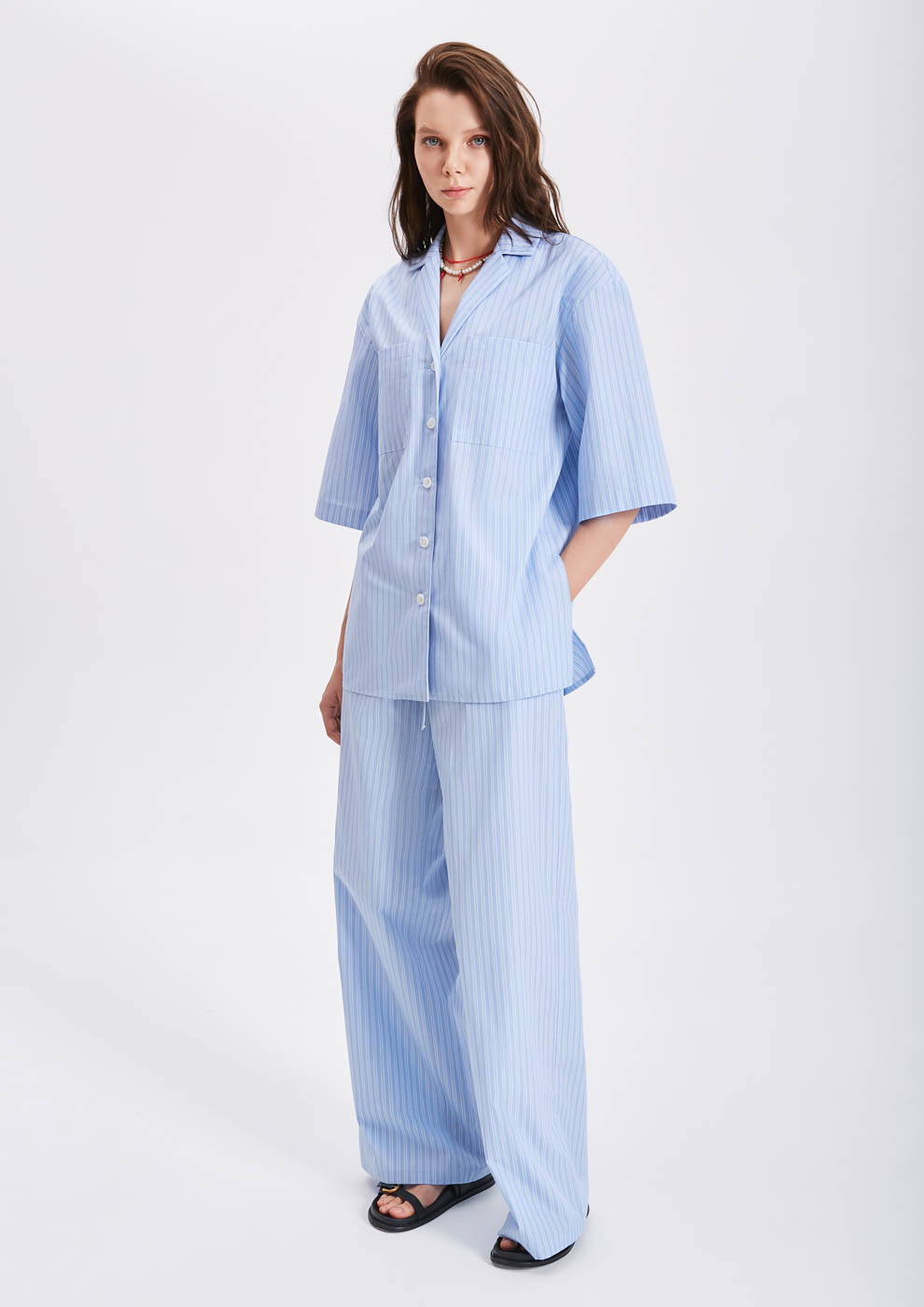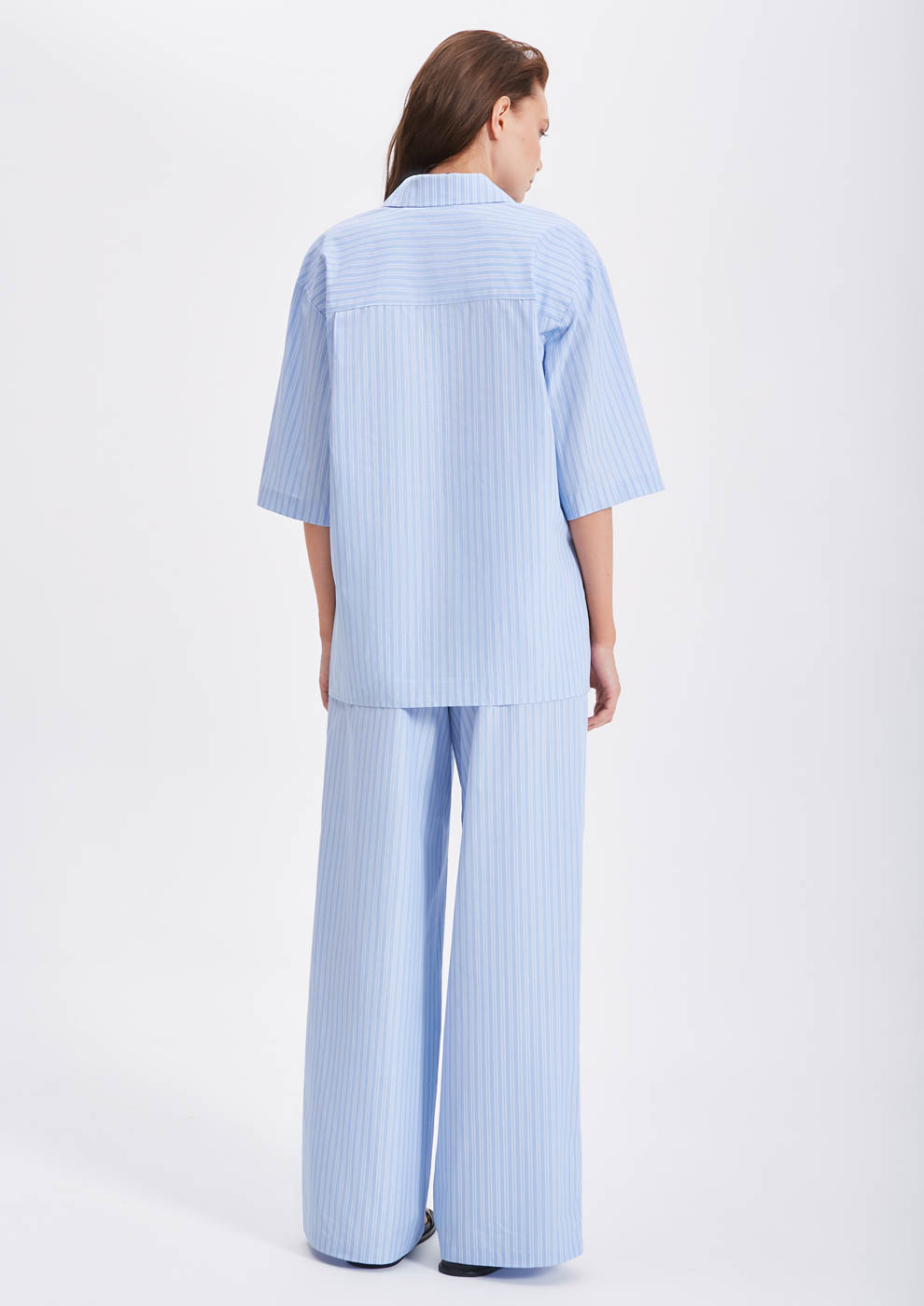 Расслабленная рубашка с красивым воротником, ждала такую выкройку. Сшила в отпуск костюм из льна.