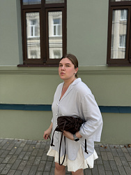 Прекрасная рубашка! Фасон полностью дополнил мой образ, искала именно ее. Сзади очень интересно расположены складки❤️ Свободная, разрезы по бокам - вообще огонь!