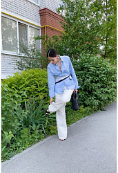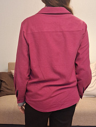 Рубашку сшила из тонкого льна. Умеренно оверсайз, в районе талии у меня получилось сильное прилегание. Рубашка хорошая, но странно получились рукава - как будто бы сильно свободные в сравнении с основой.
