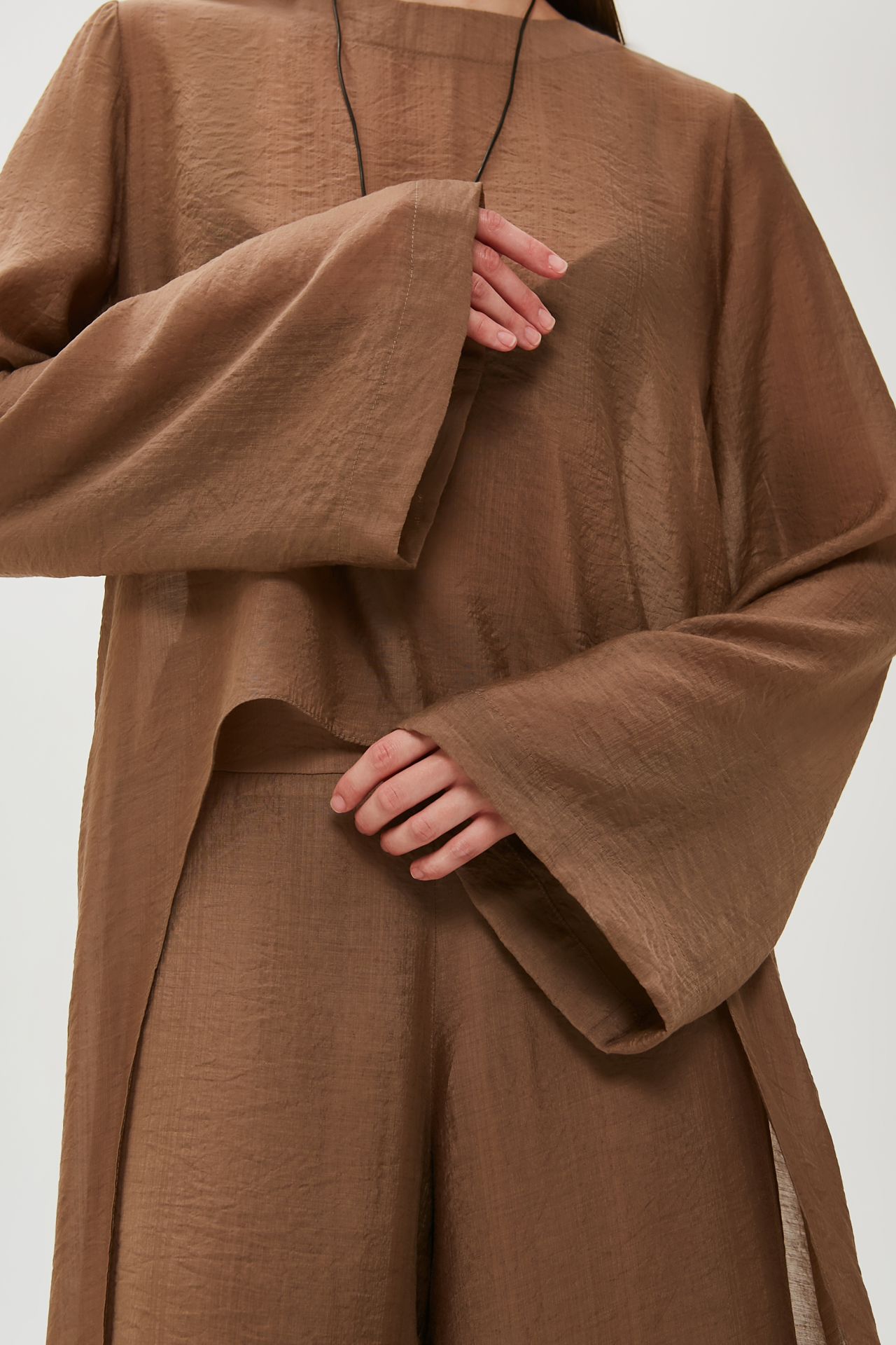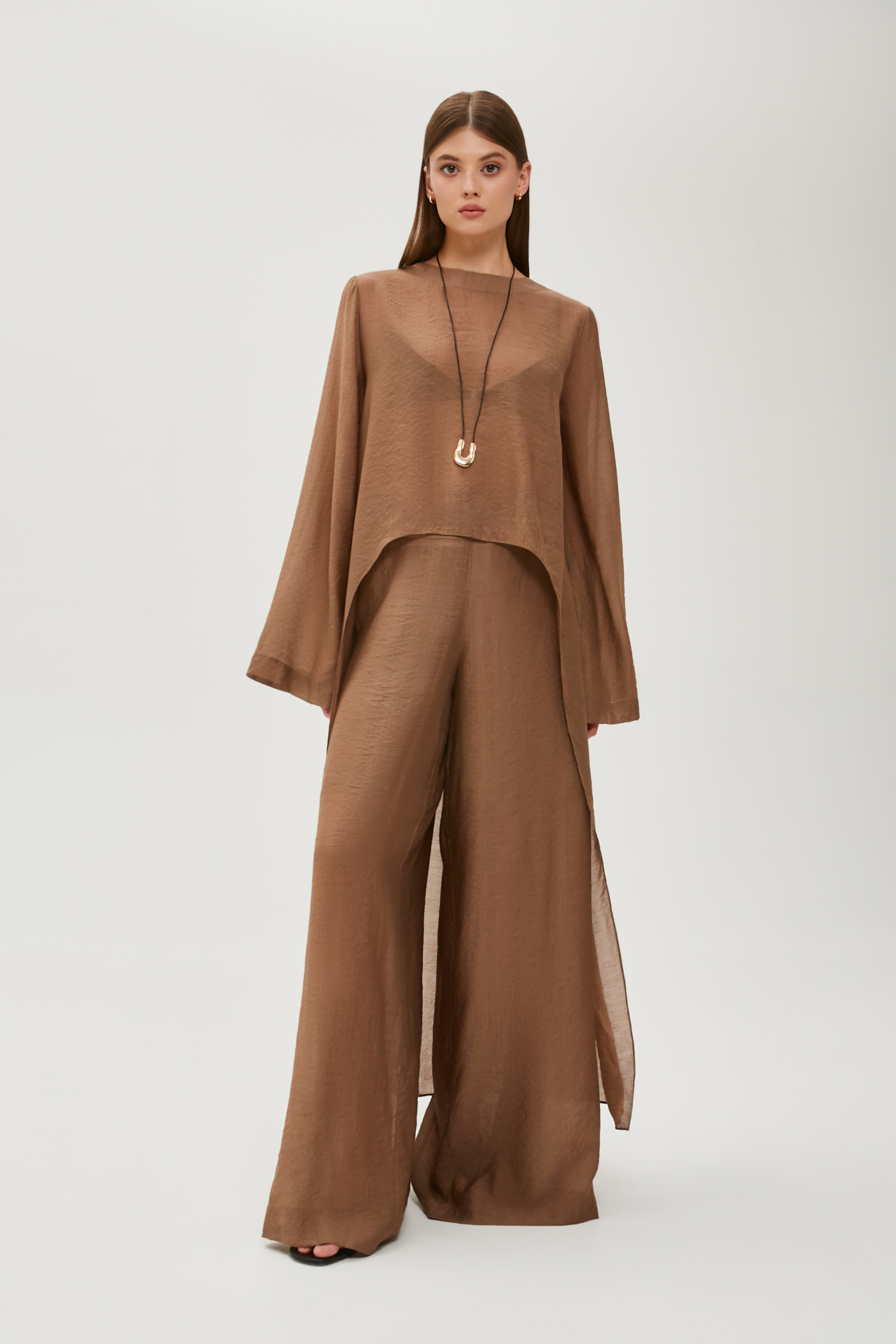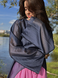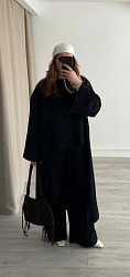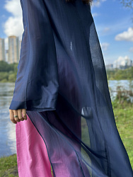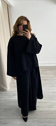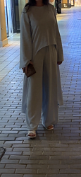 Шила из вуали. К брюкам шила еще и тунику из этого же комплекта! Смотрится очень круто. Костюм всегда прикрывает взгляды, и в нем получаю множество комплиментов💙 Ношу и на пляж, и в городе!