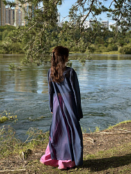 Сшила тунику из жатого батиста (тенсель/ эластан). Долго искала подходящую ткань. Костюм очень нравится. В пошиве туника не сложная, редактировала только длину шлейфа (немного убрала).