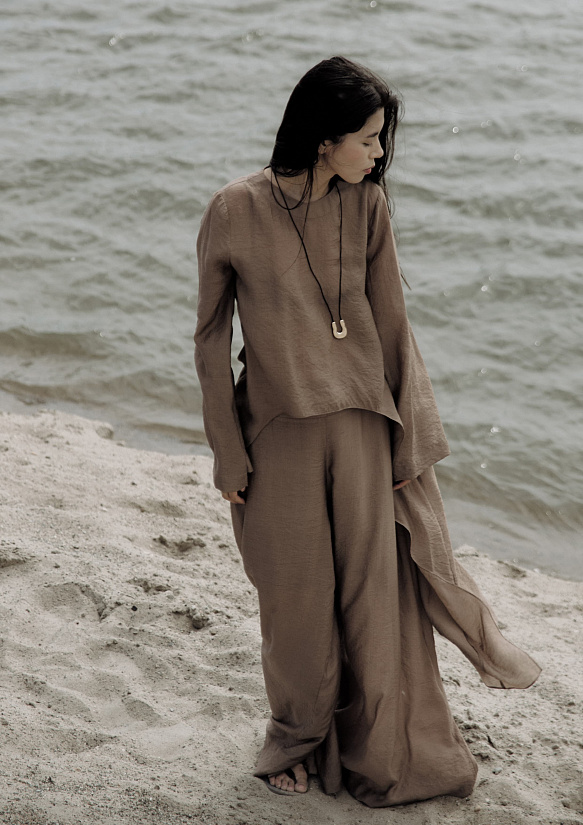 Силуэт трапеция отлично сидит на фигуре, а втачные рукава делают тунику универсальной — она подойдёт как для повседневной носки, так и для более официальных случаев. Я использовала хлопок под лён, и результат превзошёл все ожидания: ткань красиво драпируется, а туника выглядит очень нежно и женственно.