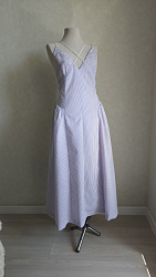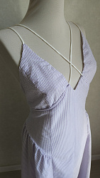 Сарафан сшит из х/б сирсакера с подкладкой из басиста. Шнур искала готовый, но в итоге заменила на тонкие бретели из рулика. Шилось без корректировок. Лекала, как всегда, безупречны.