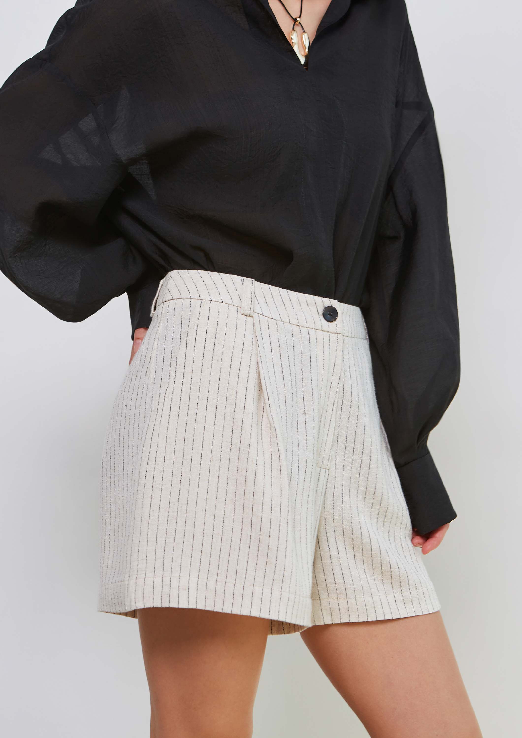 Посадка шорт низкая, я не ожидала, что настолько, хоть и читала отзывы здесь. У меня об 92, я взяла выкройку на самый маленький объем и мне они прилично широки. Могу только с ремнем носить. Если еще буду шить, внесу корректировки, см 4 точно уберу с пояса.