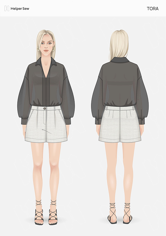Очень классный костюм. Инструкция понятная, первый раз шила гульфик с молнией, все получилось. Посадка у шорт низкая. Брала размер 46