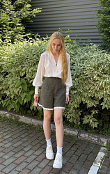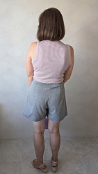 Долго выбирала модель для лета, остановила выбор на шортах Andy. Взяла объем 94 см (хотя у меня 90🙈) - не знаю, как так получилось)) Но, несмотря на это, шорты сели хорошо. Да, свободновато, но для лета самое оно. Материал - 100% лён. Из изменений: закрыла швы косой бейкой.