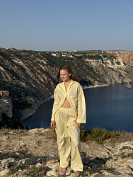 Изначально брала выкройку шорт и рубашки для пошива пижамы, но по итогу носила летом этот комплект. Все понравилось, шьется легко