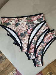 Впервые пробовала шить трусики. Интересный опыт. Использовала для пробы остатки предыдущих проектов. Почитав отзывы, расширила заднюю половинку, так как не люблю узкие сзади. Вместо беек использовала остатки эластичного кружева. Вообщем, неплохо, сидят комфортно.