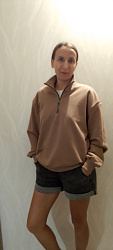 Отличный свитшот, брала в размер, длину рукава чуть-чуть уменьшала. Шила из футера 3-х нитки с велюрэффектом.