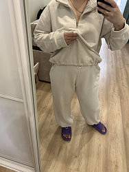 Шьется легло, если бы не молния. Я дня два наверное сидела с ней, но я новичок в этом деле. Немного непонятно в инструкции описаны шаги, в итоге разобралась. Шьется все остальное легко, с отстрочкой тоже косяки вышли, но я себя простила за это 😀. Размер можно было взять поменьше (44), 46 - выглядит на мне уж очень оверсайз. Не нашла кашкорсе в тон, поэтому манжеты сделала из футера, а пояс сделала на резинке шляпной. Шила из футера 3-х нитки петля
