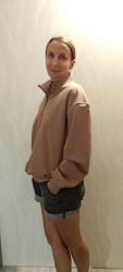 Выкройка очень понравилась, взяла на размер меньше и получила объем, который хотела, свитшот получился свободным, при этом легко надевать под куртку.