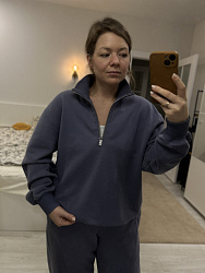 Свитшот супер комфортный. Понравились рельефы, что боковой шов смещен вперед. Обработка стойки интересная.