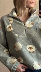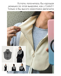 Хорошая выкройка, сел хорошо. Не понравилось, что не закрыта молния и ворот пришит открытым оверлочным швом. Может быть это технология для плотной ткани. Сшит из футера 3 нитки.