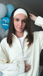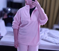 Цвет зефирный, но передать его достаточно сложно, телефон включает коррекцию) Использовала флис 240гр. Очень приятный к телу, снимать не хотелось!