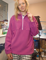 Мне понравилась выкройка. Шила не себе, а маме, мой размер 44й, ее размер 48. Могу сказать, что на моем 44м размере 48й тоже смотрится хорошо, для любителей оверсайза самое оно. Из изменений это то, что вставила резинки внизу и в рукава.