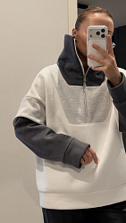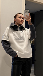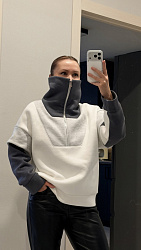 Поменяла карман (просто не нравится кенгуру), добавила рельефы, хотелось швами выделить грудь. Не планировала делать разрез горизонтальный, но не хотелось с молнией в этом месте возится, так было проще. Ткань футер с начесом. Сшила за 1 день. Для новичков, мне кажется, будет сложно с воротником, но это не точно. У меня проблем не было. Посадка идеал, как обычно у хс.
