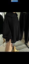 Ну это любовь. Худи шилось из футера 440г, плотноватое, но именно для этой выкройки оно прям то, что нужно. По низу рукавов и по низу вставлена шляпная резинка и фиксаторы. В расправленном виде по низу прикрывает попу. Никакие корректировки не вносились, сидит идеально.