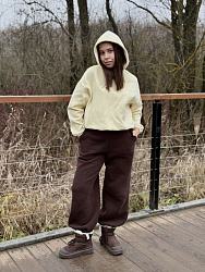 Очень понравилось худи и рельеф на рукаве, переходящий в плечо. Шила полностью костюм с брюками Nell. Тут тоже понравились кулиски, можно затянуть худи, и оно будет укороченным. Если резинку расслабить, то худи закрывает попу. Очень удобно для долгих прогулок.