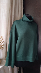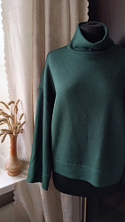 Очень удачная выкройка свитера, главное выбрать правильный трикотаж. У меня был плотный вязаный и он отлично подошел. Шьется на раз-два, обработка низа без распошивальной машины. С удовольствием повторю.