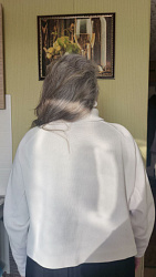 Единственное, в следующий раз взяла бы футер обычной плотности и не 100% хлопок, помягче чуть-чуть хочется в подмышках и вороте. Но с другой стороны, в этом варианте футера форма рукавов хорошо держится.