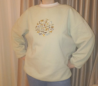 Свитшот дополнила кантом и вышивкой. Шила из футера 3-х нитки барашек.