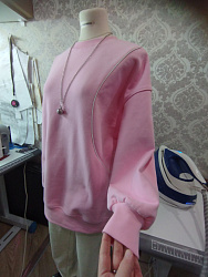 Свитшот понравился. Даже не смотря на то что пришлось достаточно много убавить. Можно было взять на пару размеров меньше. Мой косяк. Надо было сначала глянуть прибавки😅 Описание отличное. Сшилось легко. Спасибо большое 🫶🏻