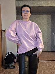 Отличный свитшот,шила из ф2н, шьется легко, инструкция понятная, за счёт оригинальной обработки рукавов смотрится интересно, по мне очень длинный получился, ну это такая модель, длину не стала корректировать хотела посмотреть что получится, единственное убрала по ширине пояс, сделала его уже, показалось что сильно широкий, а так в целом все супер, спасибо за выкройку, буду шить еще)