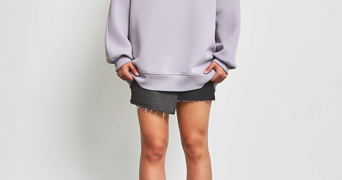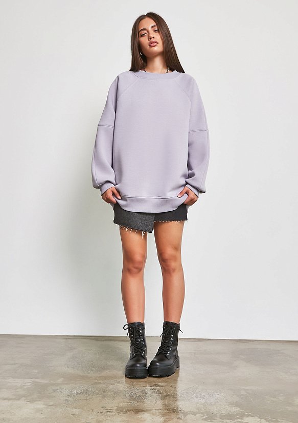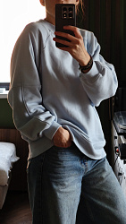 Все свои свитшоты шью только по этой выкройке. Умеренный оверсайз, длину регулирую по настроению. На фото свитшот без корректировок.