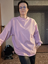Отличный свитшот - оверсайз, но не огромный. Шьется легко, выкройка отличная.