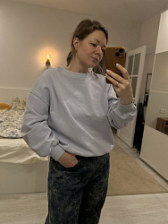 Базовый свитшот. Объемный, но умерено. Из трех нитки с начесом будет лучше смотреться.