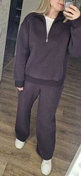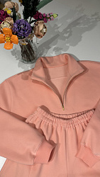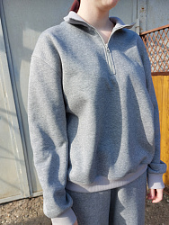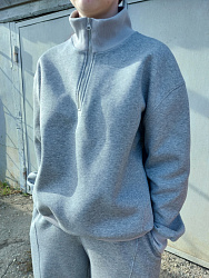 Сшила костюмом брюки Gail и этот свитшот Mara. Очень актуальная модель, поэтому пришлось постараться. В пошиве таких моделей, из футера с молнией в горловине, я новичок, поэтому на вшивание молнии пришлось потратить некоторое время, прокладывала наверное строчки три-четыре, чтобы добиться полной симметрии зубчиков молнии относительно рамки. В итоге всё получилось, и я довольна результатом.