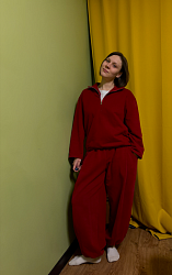 Сшила свитшот из футера 3х нитки петля с эффектом peach. Отказалась от кашкорсе, потому что не люблю его, вставила шляпную резинку по низу. Брала свой размер, но можно было бы и побольше. Никаких проблем с вшиванием молнии не было, сделала аккуратно и четко по инструкции.