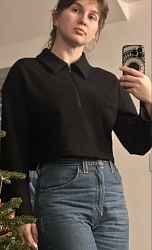 Немного изменила выкройку, длина такая короткая мне не подошла, и рукава на резинке удобнее, воротничок понравился, ложится сам как надо, уголки не торчат, а вот молнию хотелось бы с обтачкой, чтобы можно было носить слегка расстегнутой.