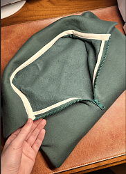 Слобности возникли при втачивании в горловину, так как нет такого опыта. В инструкции не поняла ясности как это сделать. Нет информации что надо молнию вывернуть. Написано приложить лицом к лицу. Я так и сделала))))) потом порола)