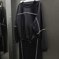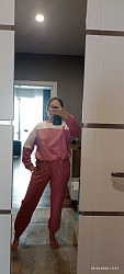 Сшила капсулу для отдых, в которую вошли брюки, свитшот и жилет. Горловину, рукава и ниж обработала кашкорсе. Рукава укоротила на 3см, к длине добавилось 6см (ширина обтачки из кашкорсе).Материал футер петля двух-нитка.